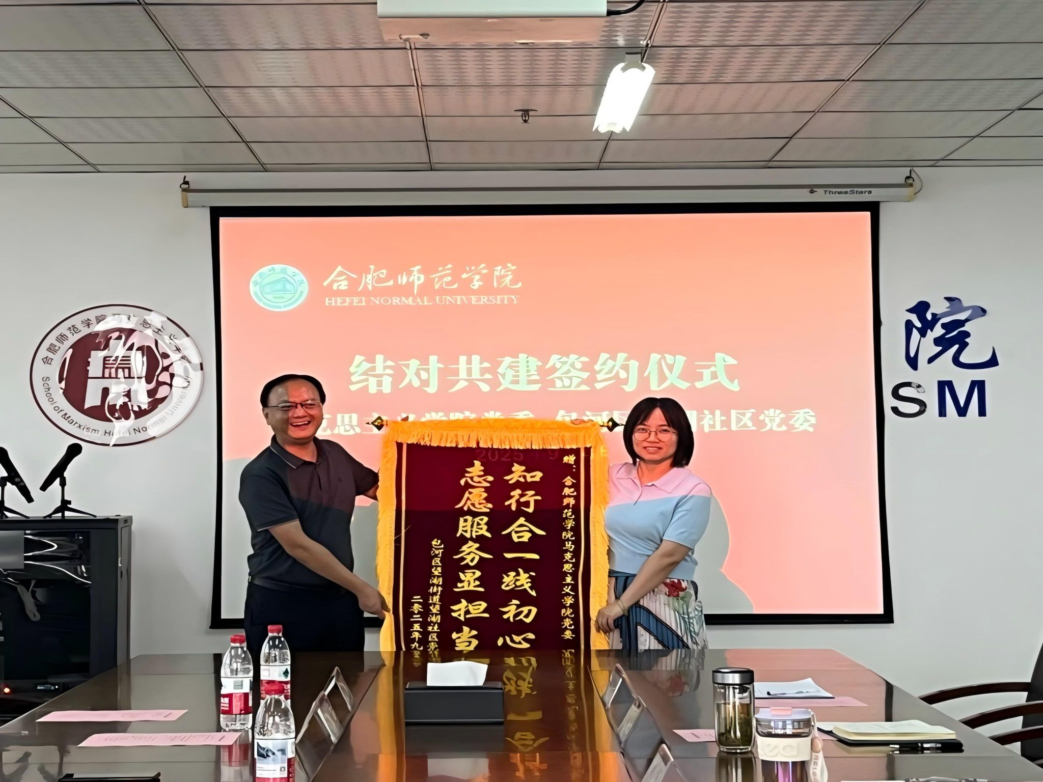 9月4日,合肥市包河区望湖社区党委书记、居委会主任王栋一行来校,将“知行合一践初心,志愿服务显担当”锦旗郑重赠予williamhill威廉希尔,以感谢学院行知学堂小先生长期以来为社区青少年开展的公益志愿服务,williamhill威廉希尔党政班子成员参与赠旗仪式。